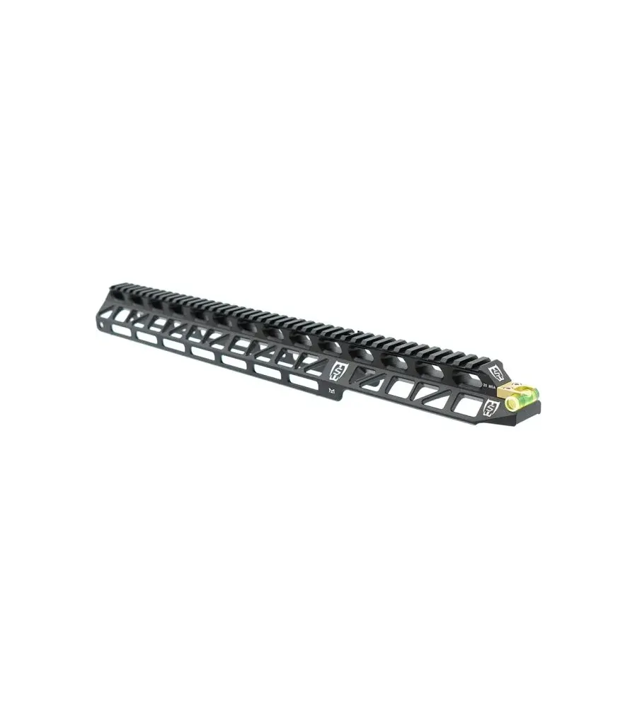 Les emplacements M-LOK de chaque côté offrent plus d'espace pour l'ajout d'accessoires tels que des lampes de poche, des lasers et des poids. Le rail de montage Weaver/Picatinny est considérablement prolongé par rapport à l'original. La pince de gaine intégrée en Delrin empêche l'affaissement du canon et les déviations de votre point d'impact après avoir changé de modérateurs.
