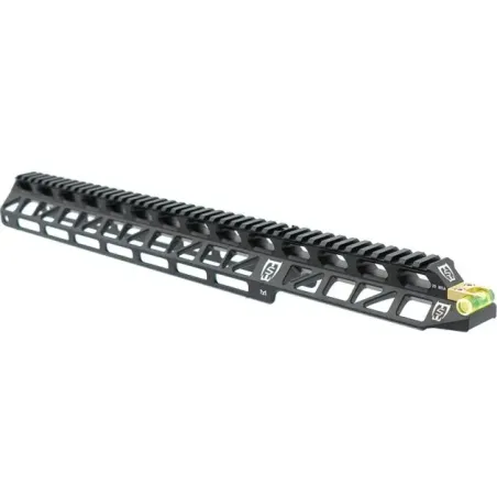 Le rail de montage Saber Tactical TRS (Top Rail Support) en longueur standard pour le FX Maverick assure non seulement un look exceptionnel, mais le prépare également pour le tir à longue distance. Son niveau à bulle à l'arrière indique si votre FX Maverick est à niveau ou non, et le rail supérieur est incliné vers l'avant à un angle de 20 MOA, augmentant ainsi la plage de réglage de votre lunette de visée. Ces caractéristiques sont un atout considérable pour le tir à longue distance.