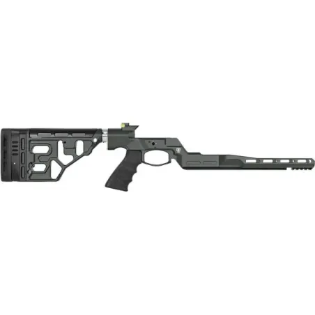 Le châssis comprend un rail Arca et un court rail accessoire Weaver/Picatinny sur le dessous de l'avant. De multiples fentes M-LOK sur les côtés et en dessous offrent suffisamment d'espace pour ajouter tous les accessoires souhaités, y compris des poids supplémentaires si nécessaire.