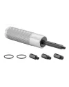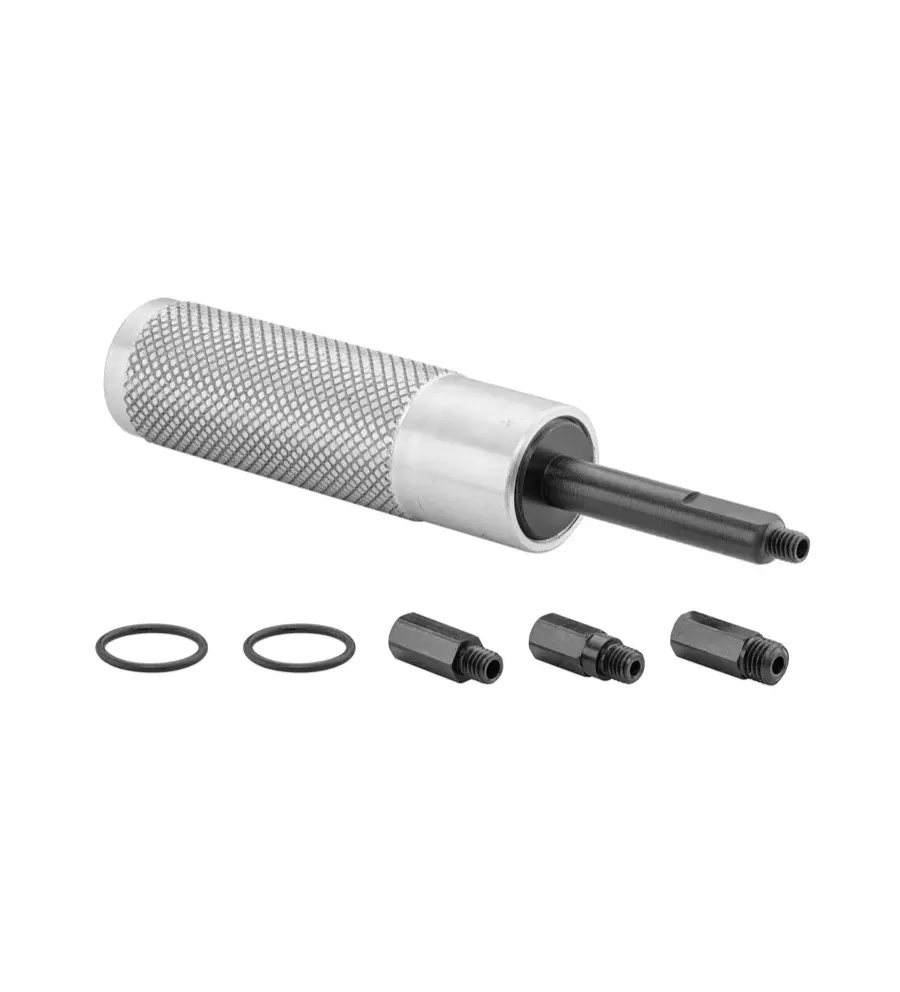 Cet outil permet de chasser les projectiles chargées sans poudre. La balle est expulsée à l’aide du CO2 comprimé. L’appareil est équipé de trois adaptateurs qui se vissent à la place de la cheminée: 1/4”- 28 UNF - ≠ 5/16” UNF - M6x1. Cartouches de CO2 non incluses.