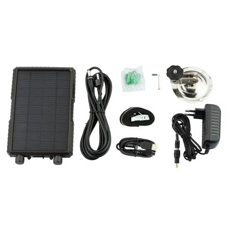 Panneau solaire avec batterie intégrée - petit modèle, résistant, étanche et facile à utiliser. La batterie lithium polymère haute-capacité peut être rechargée grâce au panneau solaire ou sur secteur. Batterie lithium polymère intégrée : 7,4 V / 1500 mAh Puissance du panneau solaire : 2 W Puissance de sortie : 12v - 1600 mA Chargeur secteur fourni : 12v 2A 24w Fiche de sortie : 5,5 mm x 2,1 mm Étanchéité : IP54 Compatibles avec les pièges photographiques suivants : PIE1023; PIE1037; PIE1046; PIE1051; PIE1052
