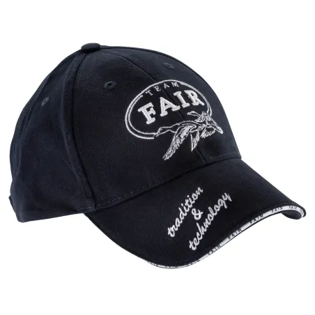 Casquette bleu marine et blanc. Casquette aux 6 panneaux. Logo F.A.I.R.® brodé sur le devant. L’écriture “Tradition & technology” brodé sur la visière.Couleur: BLEUETissu: Coton