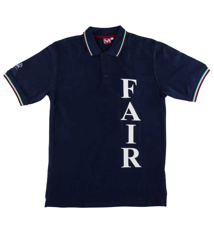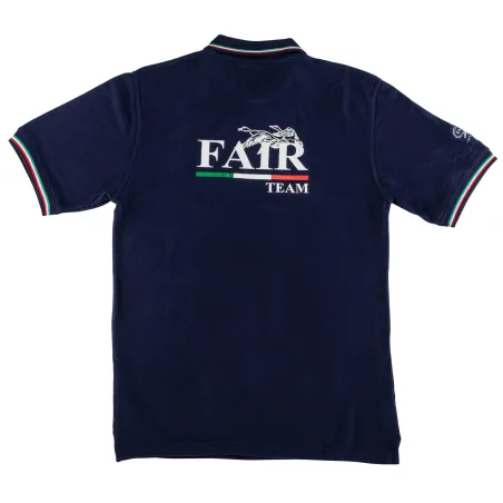 Polo à manches courtes.Disponible en bleu Italie, logo F.A.I.R.® sur le devant et le drapeau italien au verso, sous le col.Col et manches tricolore italien en finition.Couleur:BleuTissu: CotonTaille: XS - S - M - L - XL - XXL