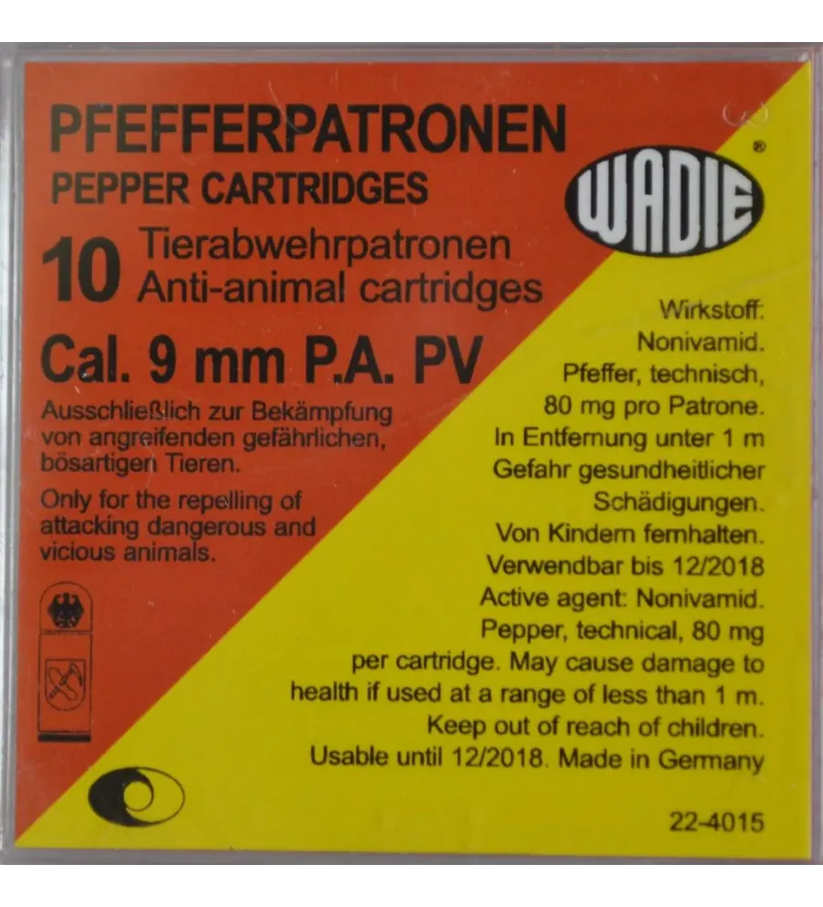 Cartouches à gaz poivre PA PV - Cal. 9 mm x10