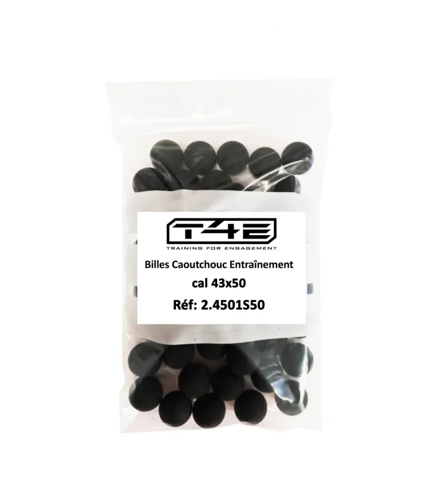 Billes pour arme de défense T4E Caoutchouc entrainement - Cal. 43 x50