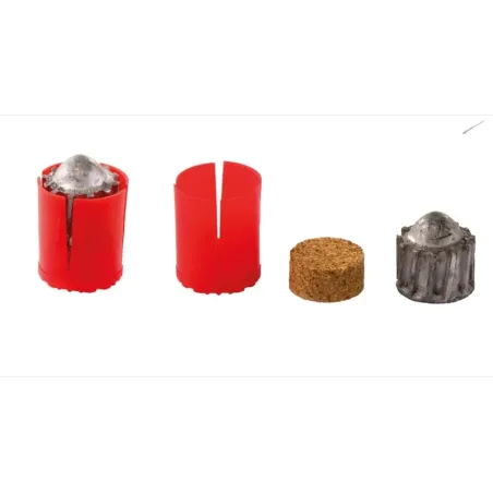 Balle en plomb type Brenneke-S en sabot plastique avec bourre liège.
