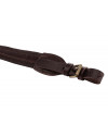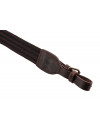 Bretelle à 2 boucles cuir et coutures renforcées. Courroie de 40 mm en toile doublée d'une bande de cuir de 18 mm cousue. Face inférieure antidérapante grâce à 3 rangées caoutchoutées.