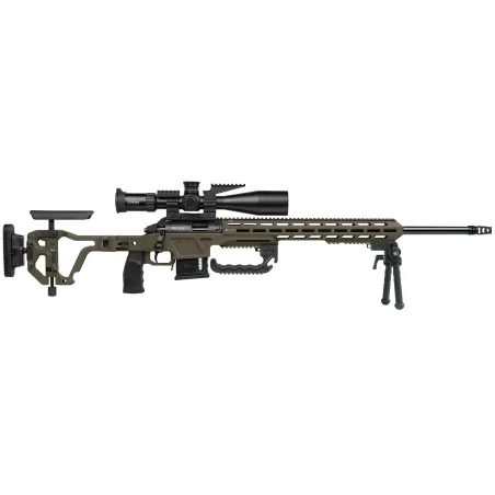 Une action small bore de référence associée à un canon match et une crosse entièrement réglable pour répondre aux besoins des tireurs les plus exigeants. Canon rayé de qualité match Lothar Wathler Crosse pliante avec réglages horizontaux et verticaux à leviers multiples. Monopode rétractable avec réglage rapide de la position et réglage fin, et pièce de joue isolée. Chargeur 10 balles à alimentation unique et à pile unique Fourche elliptique octogonale avec système M-LOK®, un rail supérieur monobloc intégré de 20 MoA et un rail monobloc intégré pour le montage d'un bipied selon STANAG 4694/Mil std 1913. Rail d'action de 20 MoA selon STANAG 4694/Mil std 1913 Livrée avec mallette de transport Explorer Cases, manuel d'utilisation et kit de bienvenue.