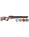 La carabine PCP RX5 RAVELLO est une carabine à plombs au design saisissant : sa crosse à trou de pouce en noyer de Turquie optimise sa prise en main et l'équilibre de l'arme. 2 manomètres de pression sont présents sur la carabine afin de suivre précisément la pression d'air présente dans le réservoir de 320 cc (200 bars maximum) et la pression contenue dans le régulateur. Ce dernier assure des tirs à pression constante, ce qui a pour effet d'améliorer grandement la régularité des tirs, et donc la précision.
