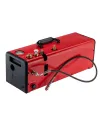 Le booster PCP est un appareil compact qui permet de charger en air une carabine PCP jusqu’à 300 bars en moins de 3 minutes. Pour cela, le booster doit être connecté à un compresseur 8 à 10 bars avec débit de 150 litres par minute qui fournit la source d’air et l’énergie (pas de branchement électrique). Un compresseur de bricolage ou industriel sera parfaitement adapté.