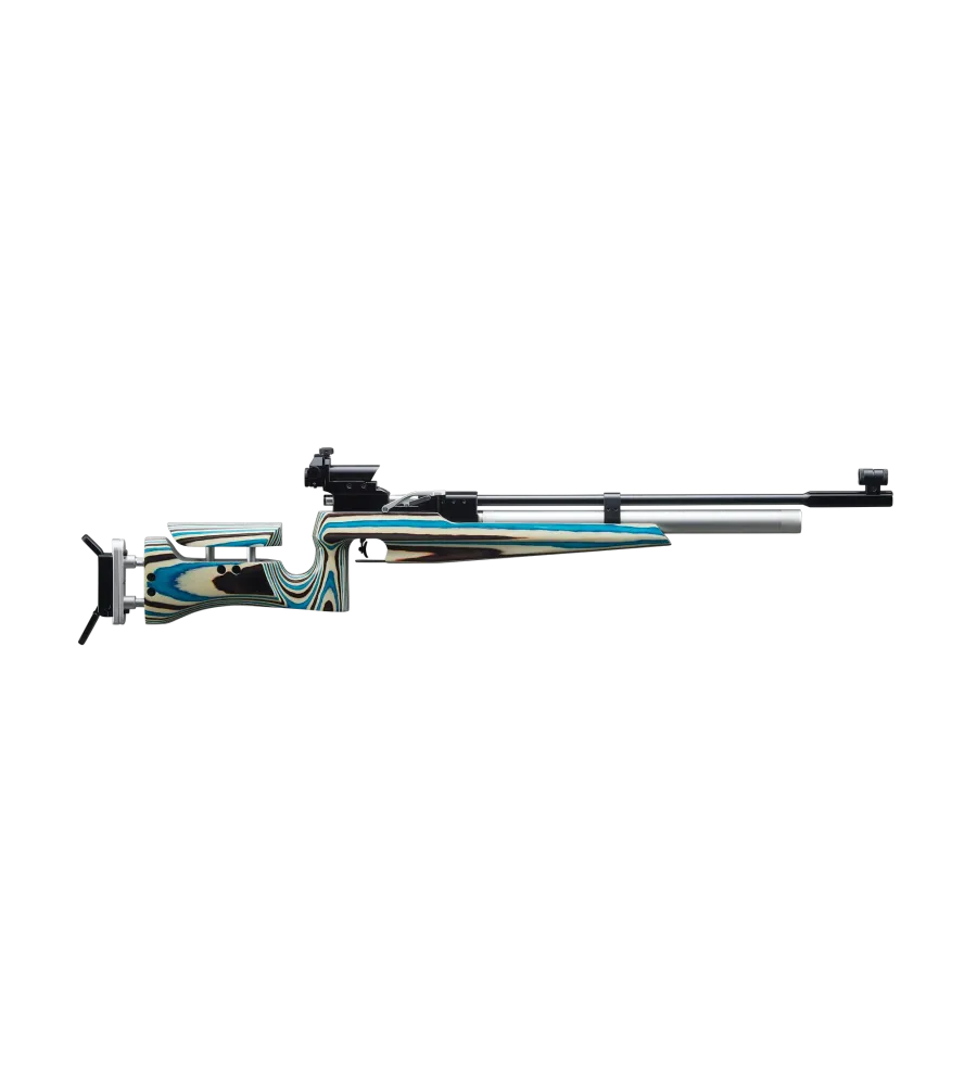 La carabine PCP monocoup MAT300 est idéale pour le tir de précision type match avec un rapport qualité /prix très attrayant. Elle possède une détente Match ajustable ainsi qu'une crosse en bois laminé réglable. Son réservoir d'air est équipé d'un régulateur qui assure une constance lors de chaque tir. Elle possède un levier d'armement ambidextre pour être utilisée par des gauchers. Caractéristiques : Calibre : 4.5 Capacité réservoir d'air : 200cc Régulateur d'air : inclus Puissance : 7,5J Détente match : Ajustable 45 à 907g (0.1-2 Lbf) Crosse en bois : Ajustable Longueur canon : 545mm Longueur totale : 1060-1080mm Poids : 3.3Kg