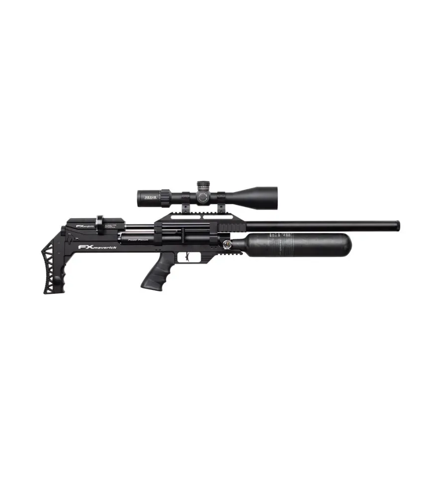 La FX Maverick Sniper se distingue par son système unique à deux régulateurs AMP. Le premier régulateur réduit la pression que le second doit gérer, ce qui améliore la constance du tir. Les deux régulateurs sont ajustables de l'extérieur, avec une différence de pression idéale comprise entre 30 et 40 bars.
