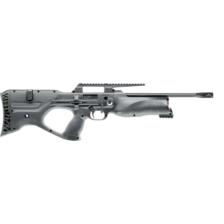 Le Walther Reign M2 PCP est un fusil bullpup à air comprimé qui allie les avantages d'un fusil de taille normale à un design compact et sportif. Conçu dans sa deuxième génération, il reste léger grâce à sa carcasse en polymère robuste et son cadrePicatinny en aluminium. Le chargeur, positionné à hauteur de la joue, permet l'utilisation d'un canon rayé de 600 mm dans une longueur totale de 765 mm, assurant une grande précision. Le filetage 1/2x20" UNF au canon facilite l'installation d'un silencieux. L'énergie est fournie par un réservoir d'air comprimé de 230 bars, équipé d'un manomètre intégré et d'un adaptateur de remplissage rapide. L'armement se fait par un levier long et réversible, et la crosse ambidextre assure une prise en main intuitive pour droitiers et gauchers. Un rail Picatinny permet d'ajouter divers accessoires. Livré avec chargeur et embout de remplissage.