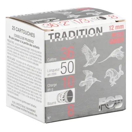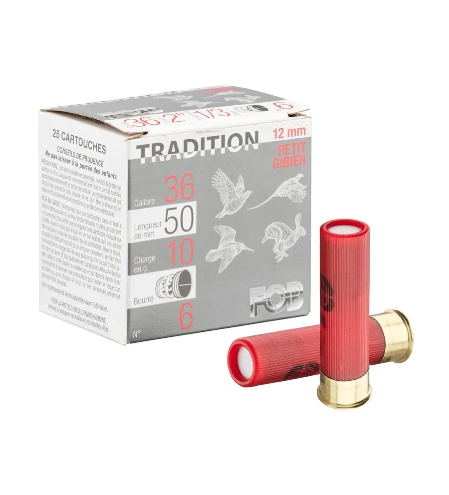 Cartouches pour le tir de loisir ou la régulation des nuisibles. Calibre 36 soit 12 mm en chambrage 50 mm