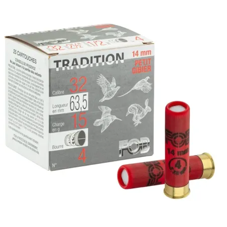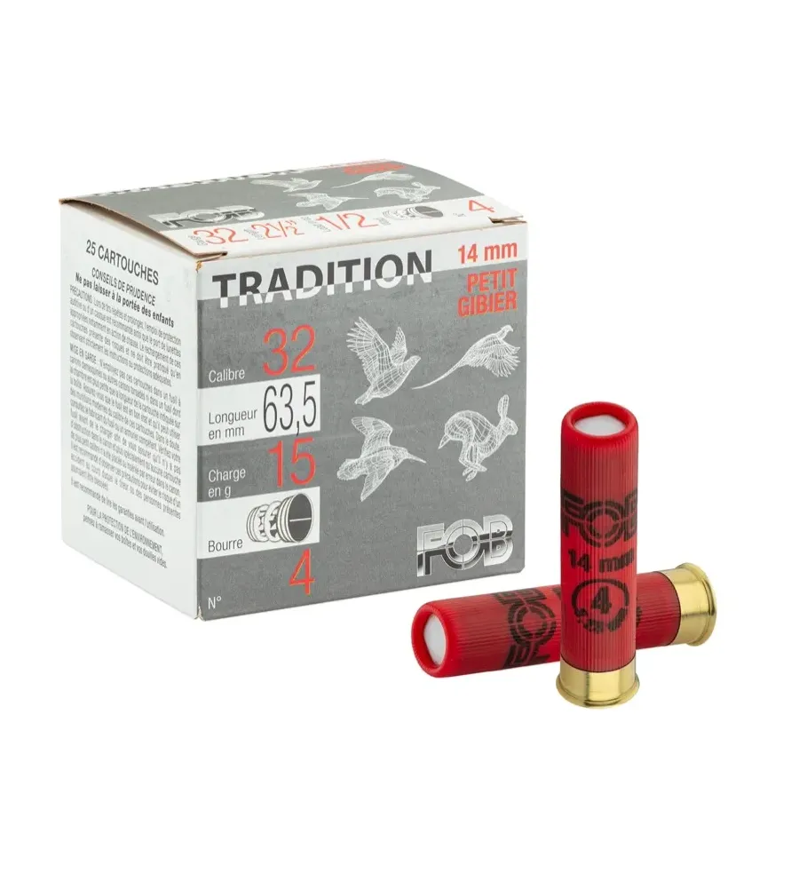 Cartouches pour le tir de loisir ou la régulation des nuisibles, dans les pays qui l'autorisent. Calibre 32 soit 14mm en chambrage 63mm. Boite de 25 cartouches.