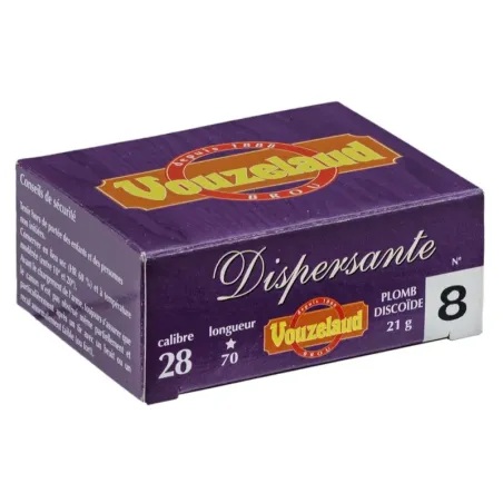 Les cartouches Vouzelaud Dispersantes 28/70 sont spécialement conçues pour offrir un groupement large et homogène, idéales pour la chasse en plaine ou dans le bois. Grâce à leur plomb durci et leur bourre Vouzelaud deux éléments, elles garantissent une régularité exceptionnelle. Fabriquées en France, elles allient tradition et performance.