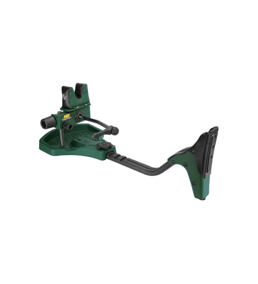 Le mécanisme Fire Control™ est un système avancé d'alignement du repos qui est actionné par un bras de commande de style « joystick ». Le bras de commande peut être déplacé dans n'importe quelle direction pour aligner parfaitement le réticule et lorsqu'il est relâché, il maintient le fusil dans cette position exacte. Cet alignement précis du réticule sur la cible permet au tireur d'être parfaitement détendu lorsqu'il appuie sur la gâchette, contrairement aux supports conventionnels qui nécessitent de pousser, tirer ou se pencher sur le pistolet pour obtenir ce dernier morceau d'alignement.