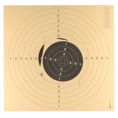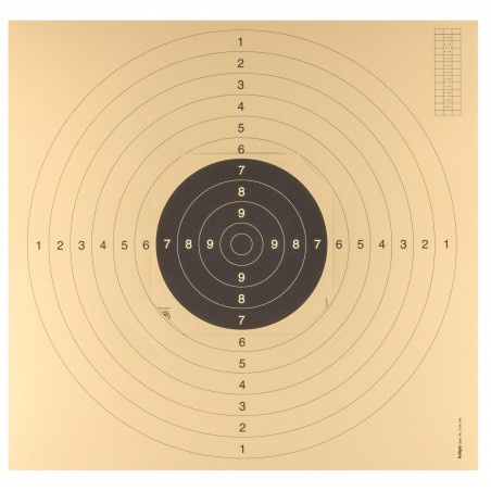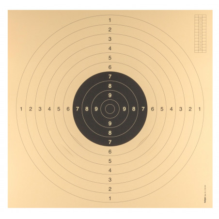 Pour pistolets tir à 25 et 50 mètres.Encoches pré-découpées pour placer facilement des centres de cibles 21 x 21 cm ou 24 x 24 cm.Cible aux standard UIT, fond beige. L'usage de ces cibles est autorisé lors des compétitions par la FFT et ISSF.