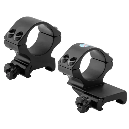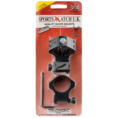 Paire de colliers, un coudé et un droit réalisés en alliage d'aluminium de qualité aéronautique. Serrage de la lunette par 4 vis. Serrage sur le rail par une large mollette. Conçus et fabriqués en Angleterre.