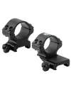 Paire de colliers, un coudé et un droit réalisés en alliage d'aluminium de qualité aéronautique. Serrage de la lunette par 4 vis. Serrage sur le rail par une large mollette. Conçus et fabriqués en Angleterre.