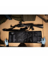 Tapis absorbant permettant d'effectuer la maintenance et la réparation de répliques airsoft, de carabines à plomb airgun, d'armes à feu. Sa texture moussée permet d'absorber les chocs léger et de travailler dans les meilleures conditions. L'imprimé AK47 de ce tapis retrace l'histoire de cette arme, son diagramme et sa notice d'entretien.   Dimensions : 89x29cm Epaisseur : 3mm Matériaux : mousse Néoprène de 3mm d'épaisseur et polyester imprimé sur le dessus.