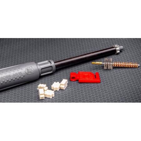 Tous les outils dont vous avez besoin pour éliminer facilement le carbone cuit de la chambre AR15. Tous les outils se rangent à l'intérieur de la poignée ergonomique. La poignée se centre automatiquement à l'intérieur de la tige pour s'aligner parfaitement avec les pattes d'extension du canon. Faites tourner facilement la poignée tout en établissant un contact précis pour tous les outils à l'intérieur de la chambre. Facilite l'élimination du carbone. Verrou pivotant pour maintenir votre arme ouverte pendant le nettoyage.