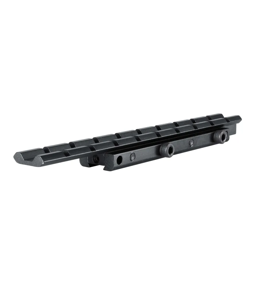 Conçu pour un rail de type 3/8” dovetail, l'adaptateur de base peut être monté et ajusté de façon à accentuer l'angle de montage. Une fois fixé au rail, la vis arrière de réglage permet d'ajuster graduellement la pente du Weaver pour s'adapter à la trajectoire de votre balle. Une butée sur l'avant permet de bloquer l'adaptateur de base, de façon à éviter un déplacement sur le rail sous l'effet du recul. L'adaptateur de base a pour effet de supprimer l'affaissement du canon ou de compenser la trajectoire des balles les moins tendues à longue distance.