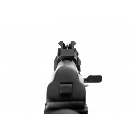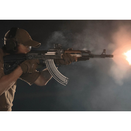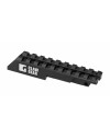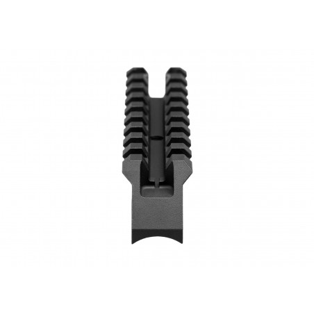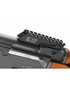 Système de montage de red dot pour plateforme AK remplaçant la hausse d'origine de l'arme. Usiné en alliage d'aluminium de qualité Rail Picatinny 21 mm de 9 slots Hausse incluse réglable en élévation Conception permettant de s'adapter à la courbe du capot de l'AKM qui peut être retiré sans démontage du système Rail ajouré permettant l'utilisation des organes de visée d'origine Compatible avec les AK47, AKM, AK74 et variantes dotées d'origine d'une hausse de type Mauser Non compatible avec le SKS