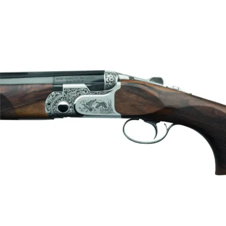 Belles gravures profondes sur la bascule. Faisans à l'envol à droite, canards dans leur milieu naturel à gauche. Espace de personnalisation sur le pontet