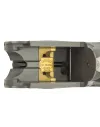 Afin de réduire les vibrations, un intercalaire en élastomère a été ajouté entre le bouton de déverrouillage et le bois du garde main.