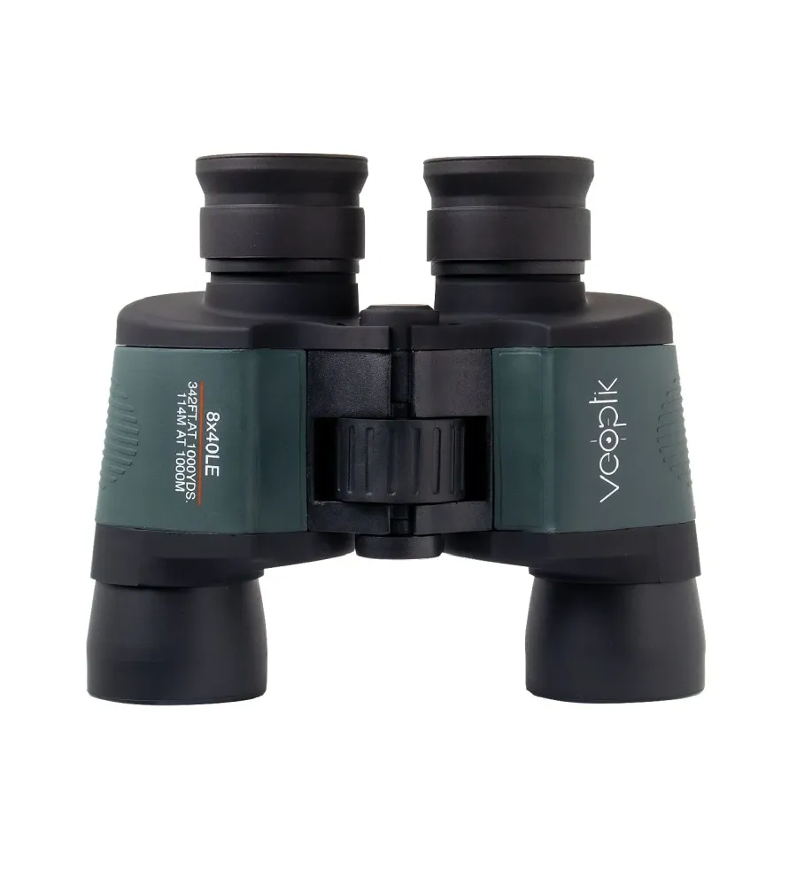 Jumelles de loisirs ultra polyvalente en 8X40Grossissement X8Objectif 40mmTraitement multicouches des lentillesConstruction prismes porroRevtement en caoutchouc vert et noirPoids: 760gHauteur: 16cm