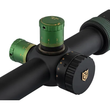 La parallaxe de cette lunette de tir est réglable de 10 yards à l'infini, offrant une grande flexibilité d'utilisation. La correction d'impact par clic est de 1/8 MoA (3.5 mm à 100 m), permettant des ajustements fins. La dioptrie est également réglable, assurant un confort visuel optimal pour chaque utilisateur.