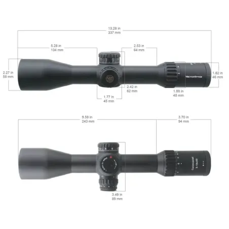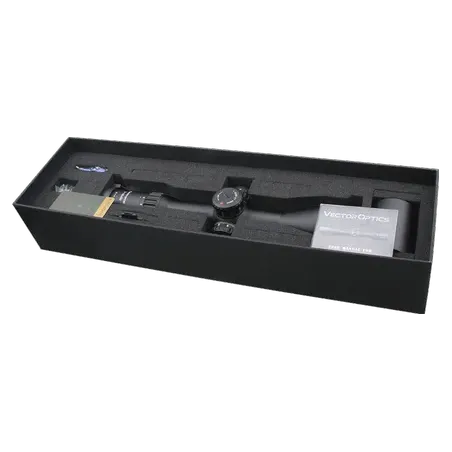 Lunette de pointe avec tube 34 mm en 6061 T6 et verre HD Schott allemand, garantissant une clarté supérieure avec plus de 90% de transmission lumineuse. Conçue pour la précision, même dans des conditions de faible lumière, avec très peu de distorsion et une dispersion extra-faible. Zoom puissant 6x, vision claire sans anneau sombre et un dégagement oculaire constant de 4". Mise au point latérale fine de 10 yards à l'infini, et illumination adaptable sur 6 niveaux. Système d'ajustement robuste en 7075 T6, avec réglage précis de 1/10MIL, 44MIL d'élévation. Réticule VCT-34FFP MIL élégant et fonctionnel, avec point central illuminé. Résiste aux chocs d'une Lapua Magnum 338. Idéale pour les passionnés de chasse et de tir sportif.