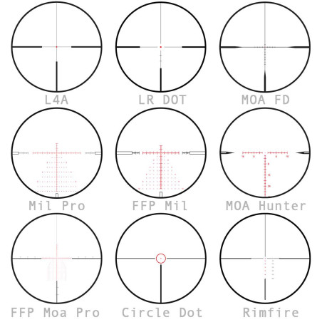Lunette de tir Hawke Vantage 30 FFP 6–24x50 SF propose un tube de diamètre 30mm. Son champs de vision à 100m s'étend de 7 à 1.7 m. Elle dispose d'un réticule lumineux rouge ou vert avec 5 niveaux d'intensité. Son dégagement occulaire est de 90 mm. Elle affiche un poids de 755 gr.