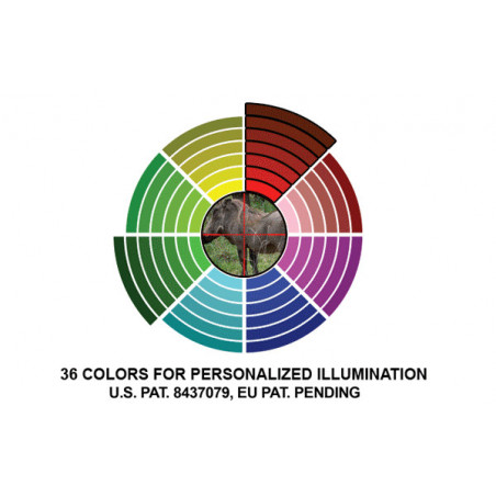 Tourelles tactiques avec remise zro.Verrouillage des tourelles par 1/4 couronne prs du corps.Correction d'impact par clic de 1/4 MoaRticule Mildot illumin 36 couleurs : commande boutons.Rglage de parallaxe par tourelle latrale.Livre avec 2 colliers h. 15 mm verrouillage rapide sur rail Picatinny 21 mm
