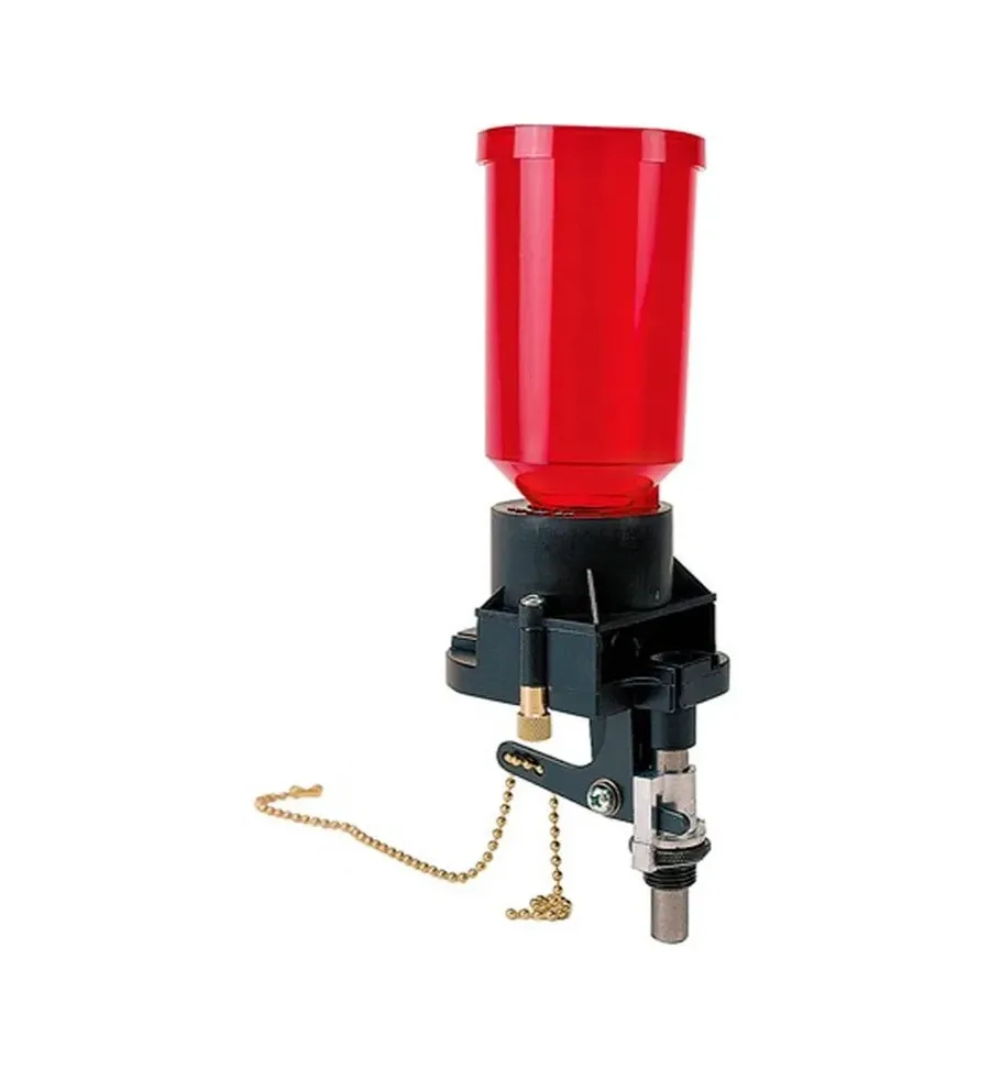Doseuse Lee pour installation directe sur presse Pro Auto disk. Livrée avec ses systèmes de distribution et ses 4 disques. Le support en élastomère et la fonte métallique revêtue de téflon en font la doseuse de fonctionnement la plus fluide. Ne coupe pas la poudre et élimine presque totalement les fuites. La grande trémie avec vanne d'arrêt est fixée avec des écrous à oreilles en laiton permettant le changement de disque rapidement. Sécurité accrue avec levier de rappel positif. Comprend un adaptateur pivotant et un levier de rappel avec ressort et les quatre disques