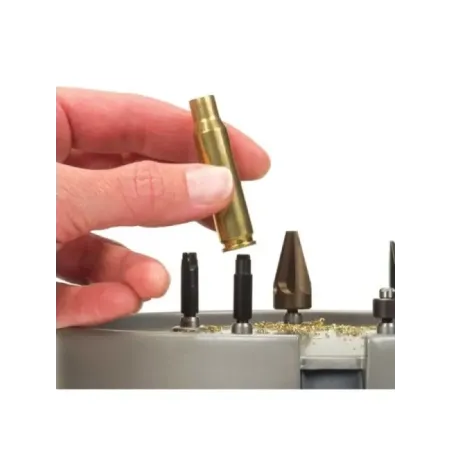 Le Case Prep Xpress Gen 2 de Lyman se distingue en tant que la seule machine "tout-en-un" disponible sur le marché. Elle regroupe tous les accessoires nécessaires à l'entretien, au façonnage et au nettoyage de vos étuis dans une seule unité. Cette consolidation offre un gain de temps et une efficacité remarquables. En une seule manipulation, vous pouvez effectuer toutes les opérations requises sur vos étuis. De plus, tous les accessoires indispensables sont inclus avec votre Case Prep Xpress. Les copeaux de cuivre ou les résidus d'entretien des douilles peuvent être facilement éliminés grâce au réceptacle prévu à cet effet sur le devant de l'appareil.
