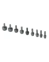 Kit de 9 pilotes pour raccourcisseur de douilles Lyman. Livré avec pilotes: 22, 24, 27, 28/7mm, 30, 9mm, 35 (38/357), 44 and 45A. Tableau des correspondances calibres dans le tableau PDF téléchargeable ci-dessous.