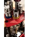 Caractéristiques : Six stations permettant l'utilisation de toute marque d'outils : outils d'alimentation de balles en ligne, outils de vérification de la poudre, etc. Indexation automatique simple et fiable : une seule pièce mobile, remplaçable en quelques secondes, aucun outil requis et aucun réglage nécessaire. Course et jeu suffisants pour les plus grands étuis de fusil magnum. Utilise la même tringlerie tout acier que celle trouvée sur notre PRESSE CLASSIQUE 50 BMG. Vérin massif de 28,4 mm glissant à travers 82 mm d'acier solide, offrant au vérin plus de 7300 mm² de support solide. Sécurité assurée avec le système de changement rapide d'outil LEE BREECH LOCK QUICK DIE CHANGE SYSTEM, fixé dans le support d'outil supérieur. Plus besoin de remplacer ou de déplacer de tourelle ou de tête d'outil pendant l'utilisation. Système d'amorçage automatique simple, fiable et sûr avec n'importe quelle marque ou taille d'amorce. L'amorce se fait en bas de la course pour que les six stations soient disponibles pour les opérations. Insertion automatique de l'étui fonctionnant avec n'importe quel étui. Les étuis peuvent être introduits manuellement par le port de chargement pratique. Dispositifs de retenue des étuis faciles à mettre en œuvre sur chaque station. Pas de ressorts, de bouchons ou de boutons à perdre ou à manipuler. Éjecteur automatique de douille fiable éjectant votre munition achevée vers le bac à munitions. Comprend le porte-outil combiné, le support de bac, ainsi qu'un bac à munitions. Comprend : Presse de rechargement Six Pack, bac, support de bac et un distributeur de douilles universel.