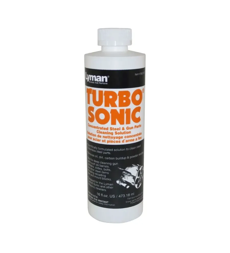 Solution de nettoyage Lyman pour les nettoyeurs à ultrasons. Permet de nettoyer toute pièce en acier ou acier inox. Non recommandé pour les pièces laiton.