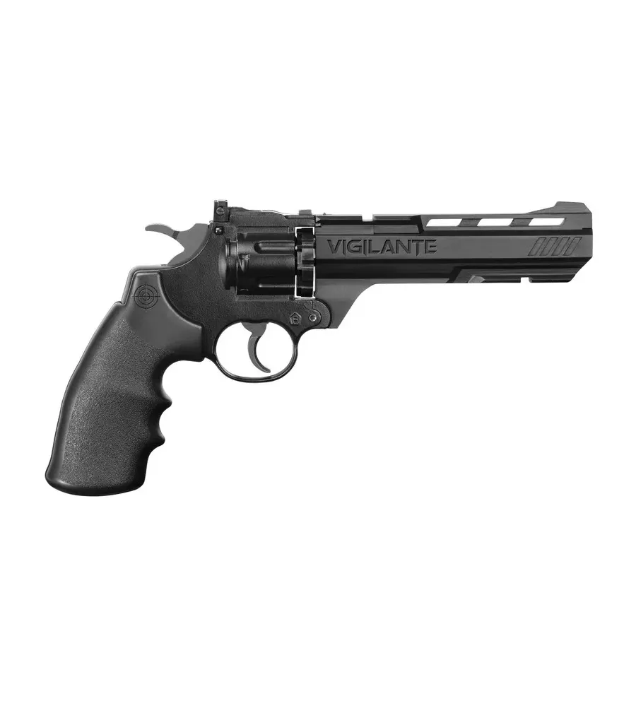 Le Crosman Vigilante arbore un design moderne et robuste, inspiré des revolvers classiques. Sa poignée ergonomique assure une prise en main confortable et sécurisée, même lors de sessions de tir prolongées. Le revêtement noir mat confère à ce revolver une allure élégante et discrète, idéale pour tous les environnements de tir.