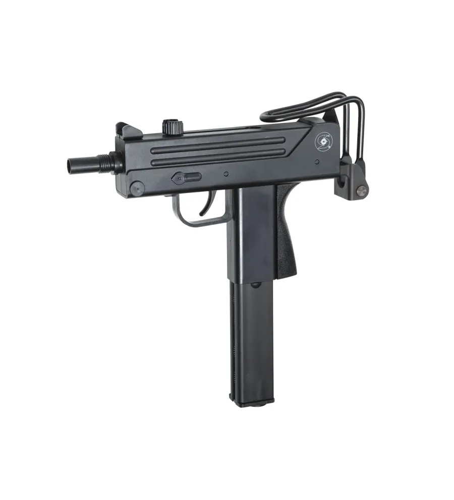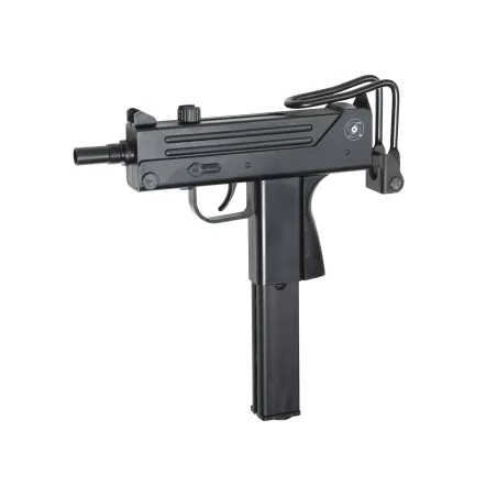 Le Cobray Ingram M11 entièrement sous licence est une version à air comprimé abordable et légère de l'arme emblématique connue dans les films et les jeux vidéos. Cette arme à air semi-automatique uniquement, est alimentée par une capsule de CO2 dans le chargeur et dispose d'une crosse de métal pliable. Puissance : 2.5 Joules Capacité : 27 coups Vitesse : 120 m/s Longueur canon : 12.8 cm Longueur totale : 25.5 cm Poids : 531 g
