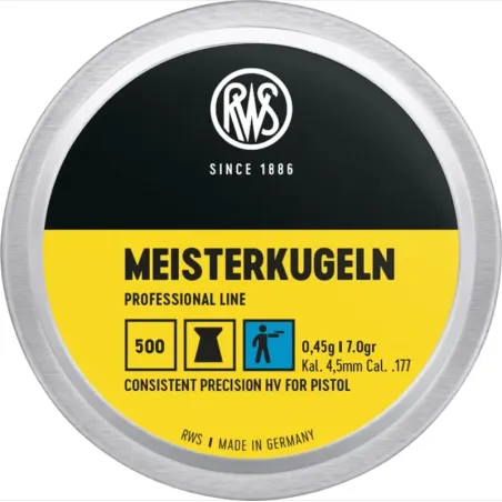 Les balles Meisterkugeln RWS font partie depuis des dcennies de lquipement de chaque tireur dsireux de raliser des performances. Des amliorations significatives de la technique de fabrication ont gnr une nouvelle progression de la qualit. De nouvelles compositions de matriaux et le traitement optimis de surface ont contribu la cration dune apparence claire et brillante permanente. Dimensions et poids sont contrls en continu en cours de fabrication.