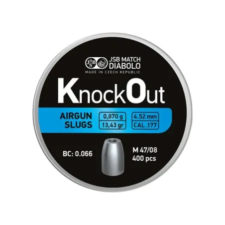 Les slugs JSB Knock Out HP 4.5 mm (.178) 13.43 grain ne portent pas leur nom pour rien. Avec un poids individuel de 13.43 grains, ces slugs de 4.5 mm sont de véritables poids lourds. Ils sont conçus pour offrir une performance de tir exceptionnelle grâce à leur densité et leur structure.