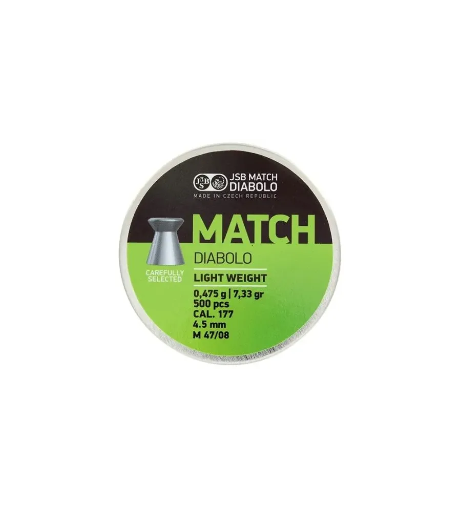 Les plombs JSB Match Light Weight 4.5 mm 7.33 grain sont conçus pour les tireurs sportifs, mais ils peuvent également être utilisés par les amateurs de tir. Ce produit est très prisé par les tireurs d'élite grâce à sa haute précision et sa constance remarquable.