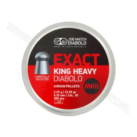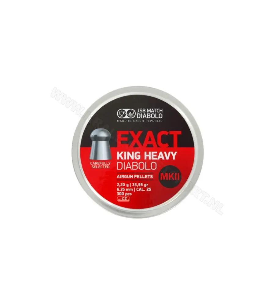 Découvrez maintenant l'édition lourde des JSB Exact King ! Le modèle MK2 est doté d'une jupe de diamètre réduit, ce qui améliore la fiabilité du plomb dans certains chargeurs rotatifs. Cette caractéristique est particulièrement appréciée par les utilisateurs de carabines à air comprimé à répétition.