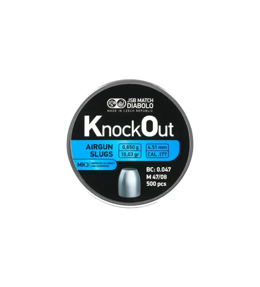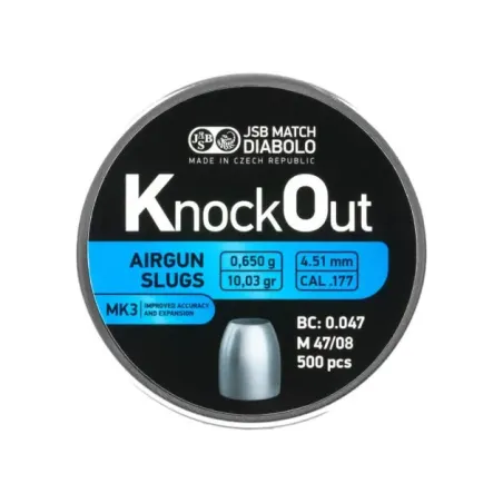 Les slugs JSB Knock Out MK3 sont conçus avec une forme aérodynamique robuste, garantissant un tir droit et à longue portée. Grâce à leur design, ces projectiles atteignent leur cible avec précision, même à des distances considérables.