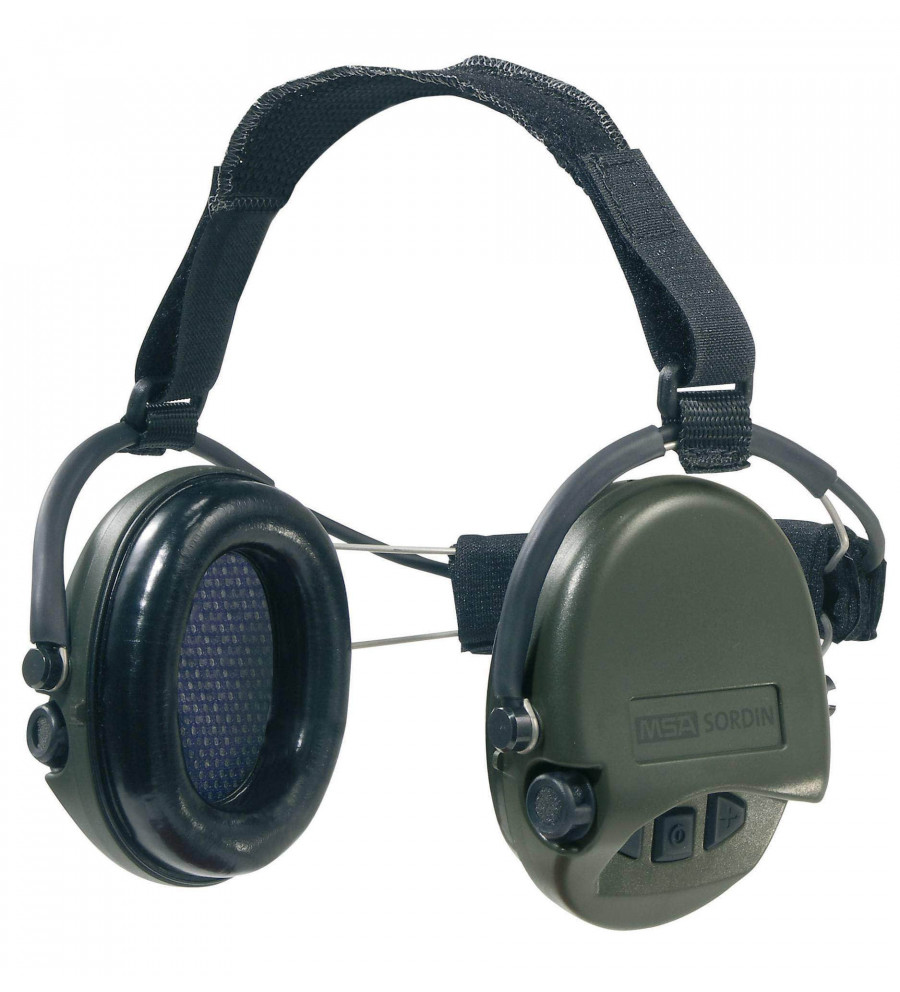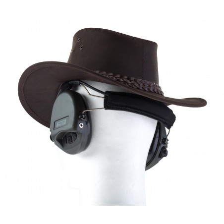 La version neckband est dotée d'un solide tour de cou en métal recouvert d'un manchon en textile souple et d'une fine sangle en nylon qui maintient fermement le protecteur auditif en place tout en permettant l'utilisation d'une casquette ou d'un casque par-dessus.